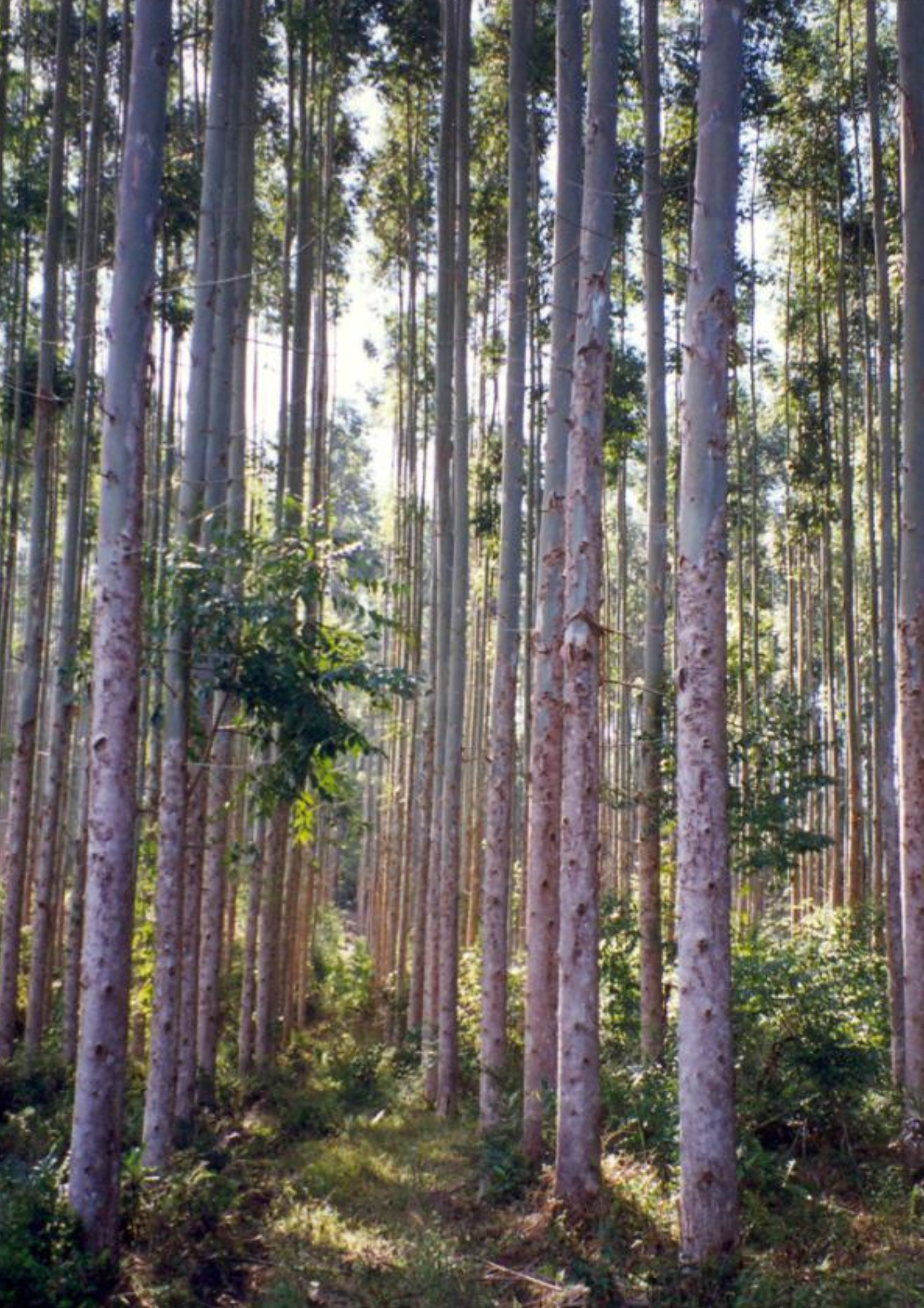 Eucalipto, pinus, mogno e espécies nobres com planejamento de longo prazo.